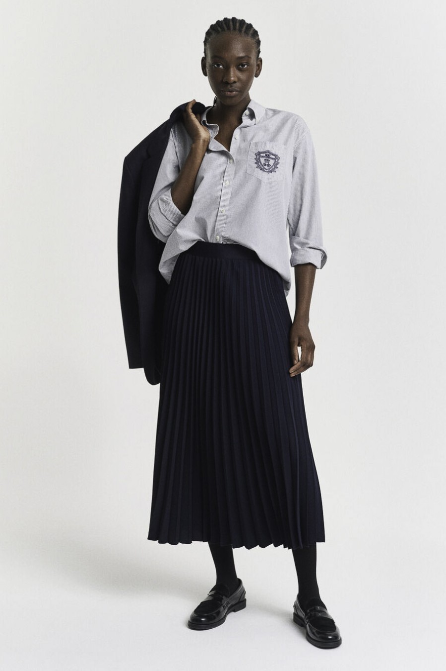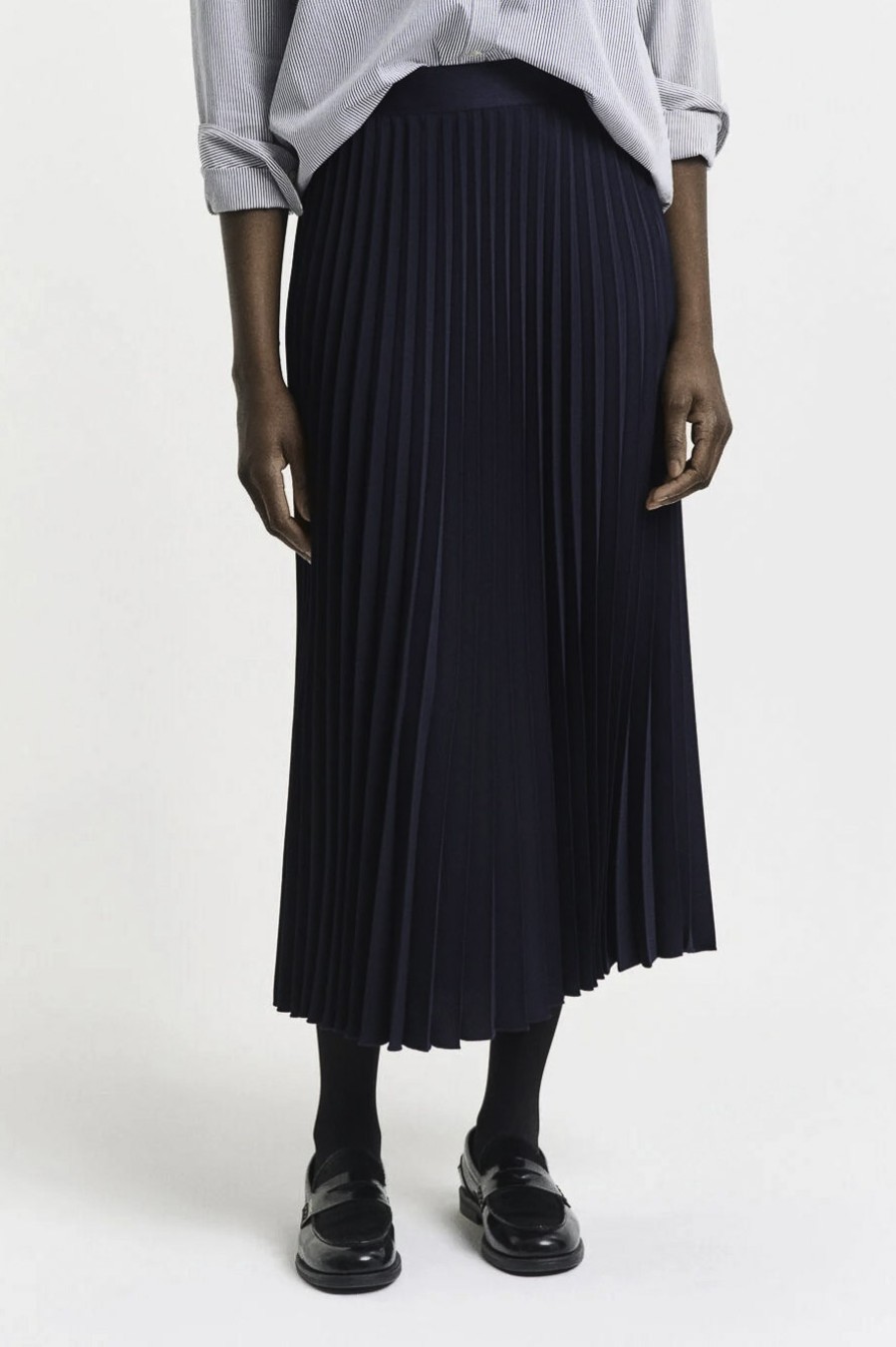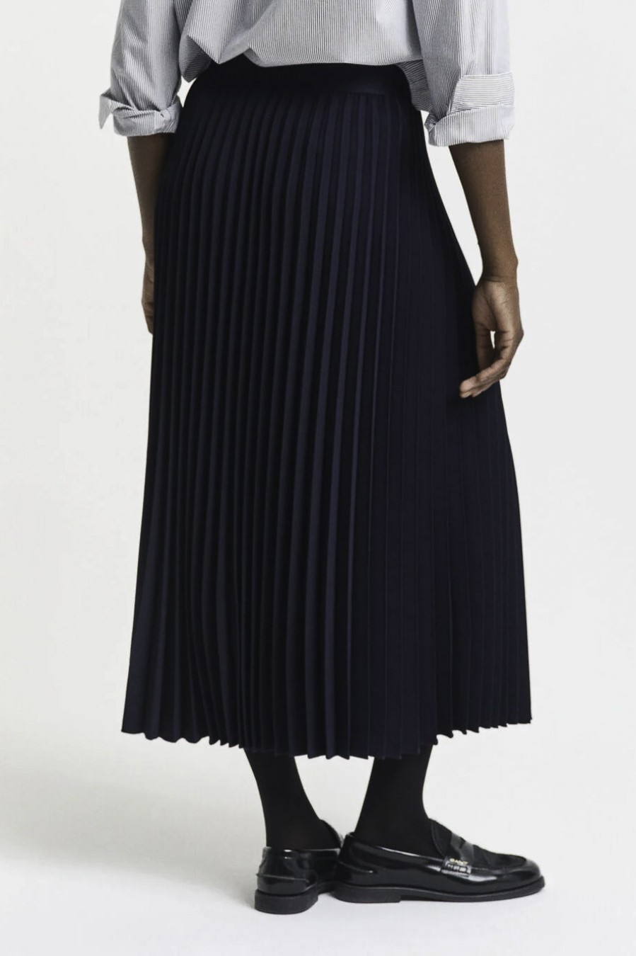 146062 Κατασκευασμένη για κανονική εφαρμογή με μέση μεσαίου ύψους, αυτή η φούστα διαθέτει ελαστική ζώνη που στερεώνεται με κρυφό φερμουάρ και κλείσιμο με κόπιτσα. Σύνθεση: 100% ΑΝΑΚΥΚΛΩΜΕΝΟΣ ΠΟΛΥΕΣΤΕΡΑΣ
