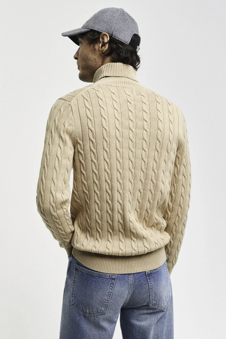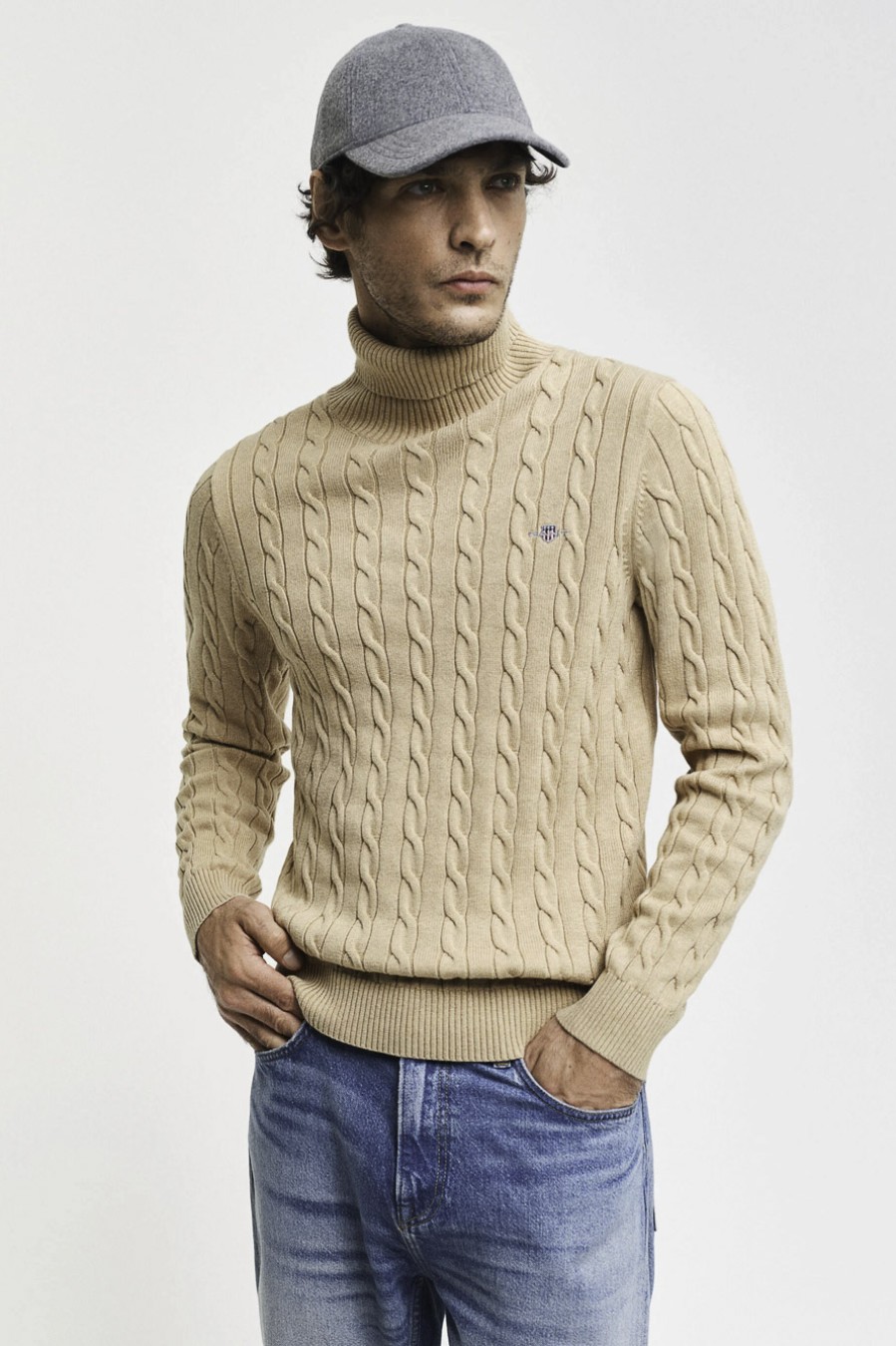 145633 Σχεδιασμένο από βαμβάκι με πλεκτή δομή με καλωδιωτή πλέξη σε όλη την επιφάνεια, αυτό το απαλό πουλόβερ έχει κανονική εφαρμογή και ζιβάγκο. Ένα απαραίτητο κομμάτι για preppy στυλ, διαθέτει λεπτομέρειες με την εμβληματική ασπίδα GANT κεντημένη στο στήθος και ριμπ τελείωμα στο λαιμό, το στρίφωμα και τις μανσέτες. Σύνθεση: 100% ΒΑΜΒΑΚΙ