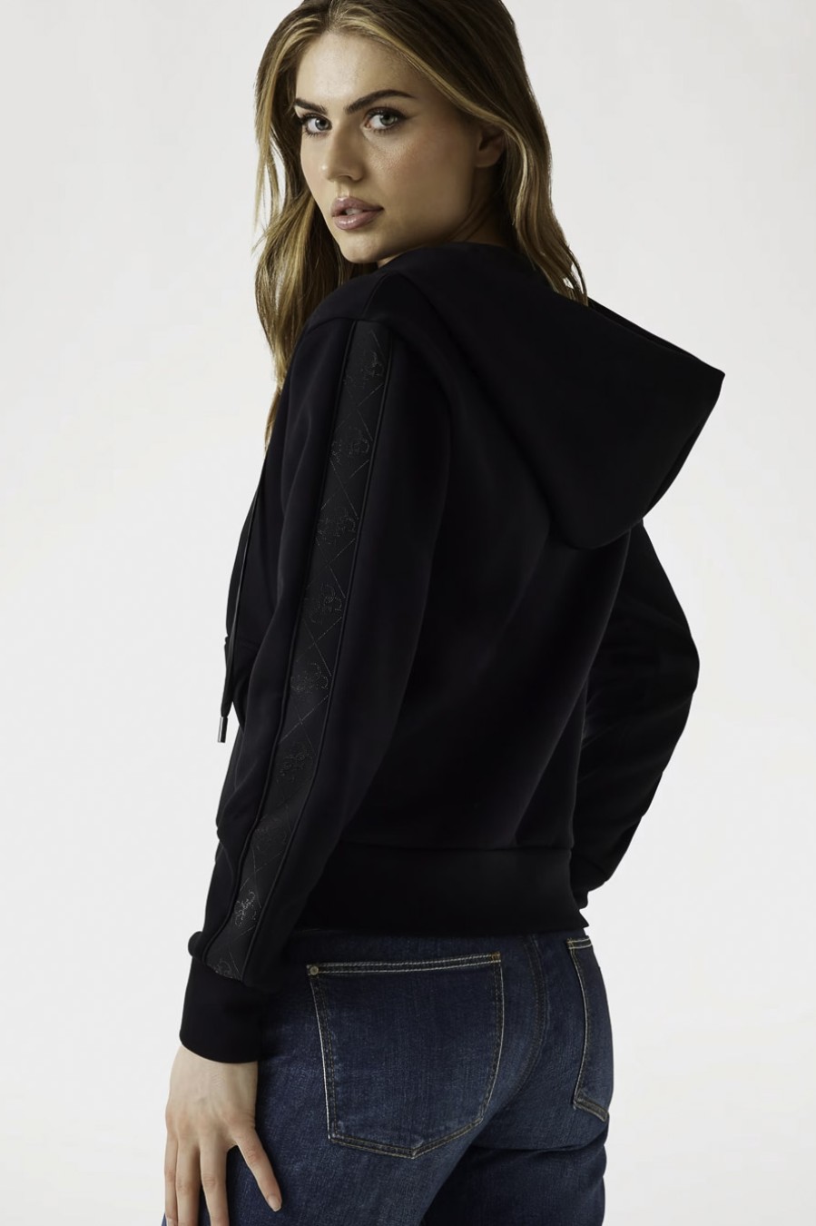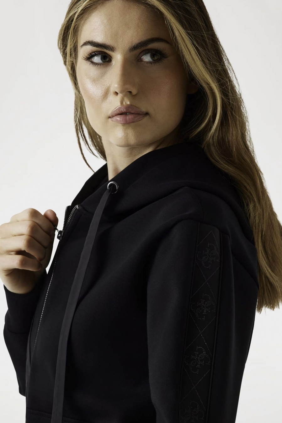 500648 Φούτερ από ελαστική, σύμμεικτη βισκόζη. Κουκούλα με κορδόνι. Μακριά μανίκια με λωρίδες με το λογότυπο πλευρικά. Πλευρικές τσέπες μπροστά. Κλείσιμο με φερμουάρ. Σύνθεση: 48%ΠΟΛΥΕΣΤΕΡΑΣ 42%ΒΙΣΚΟΖΗ 10%ΕΛΑΣΤΑΝ