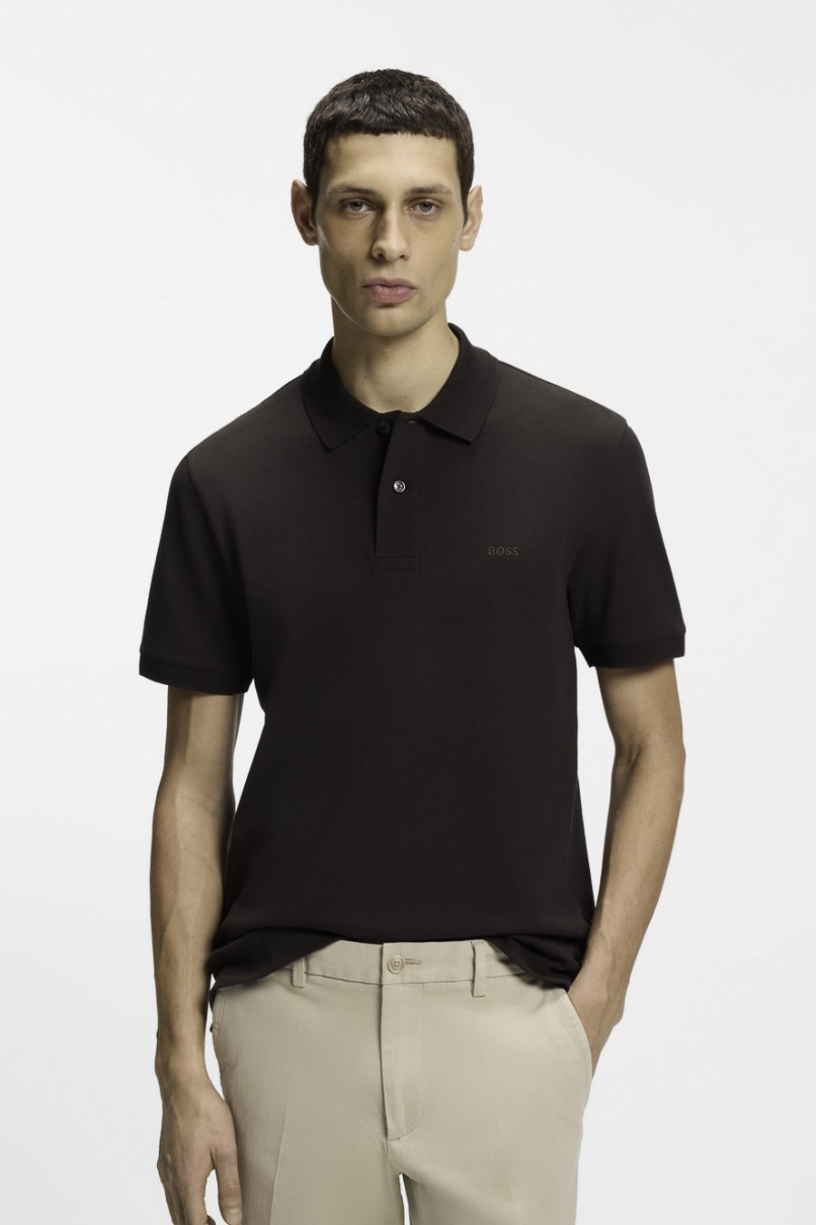 147210 Με τον καθαρό, σπορ σχεδιασμό και το κεντημένο λογότυπο, αυτό το πόλο μπλουζάκι BOSS Menswear θα απογειώσει κάθε εμφάνιση. Ίσια εφαρμογή από λεπτό βαμβακερό πικέ. Κανονική εφαρμογή Επίπεδος γιακάς Αριθμός κουμπιών: 2 Κοντά μανίκια Σύνθεση: 100% Βαμβάκι