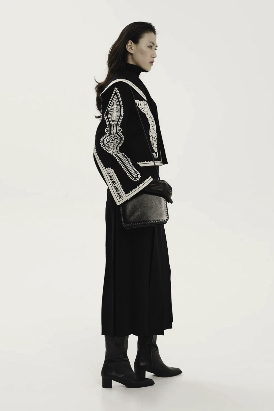 CHIMERA CROPPED JACKET WITH WHITE CORD EMBROIDERY