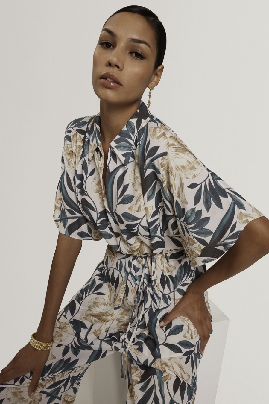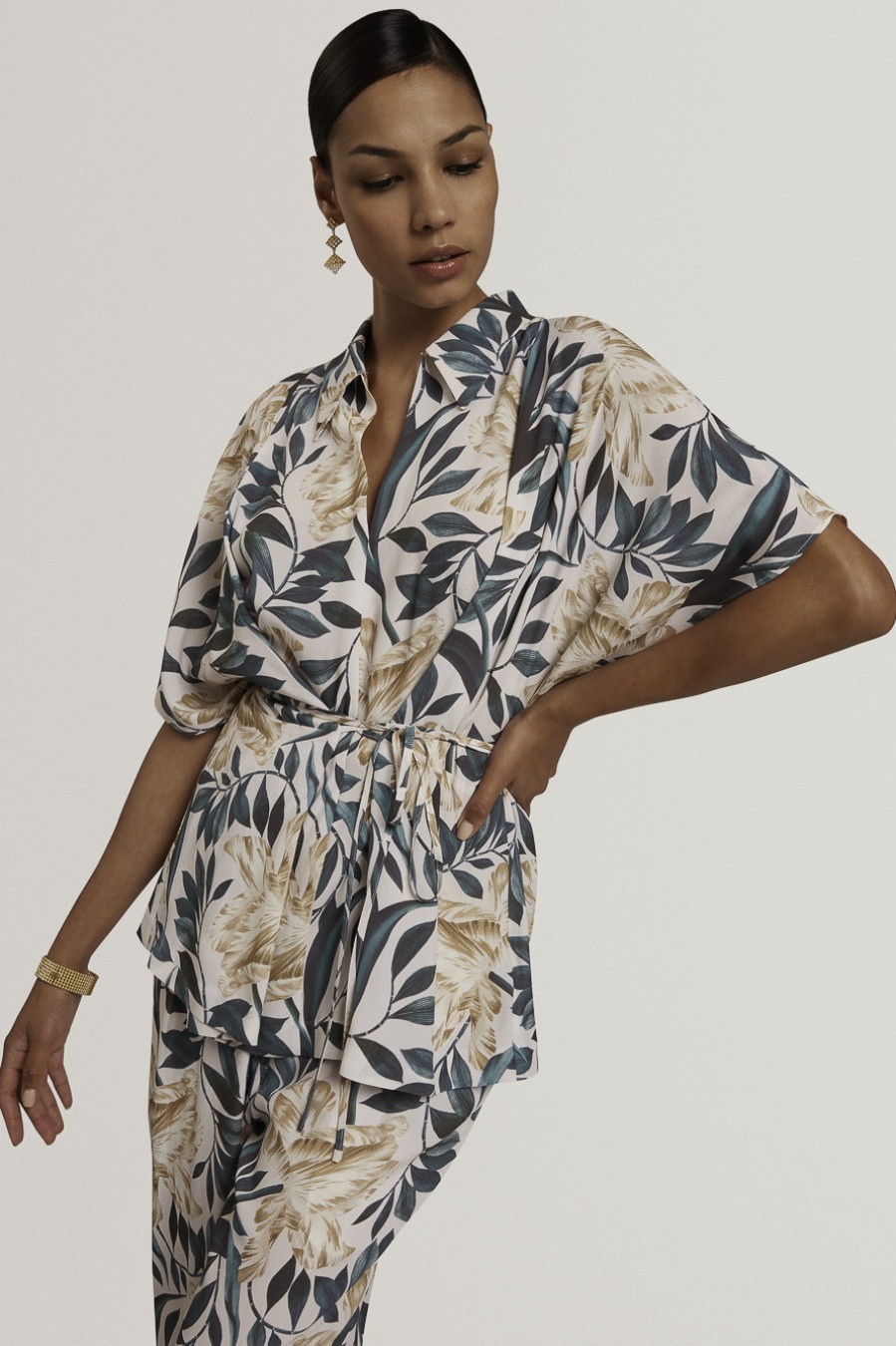 GEHMMA Printed Tie Detail Short Sleeve Shirt