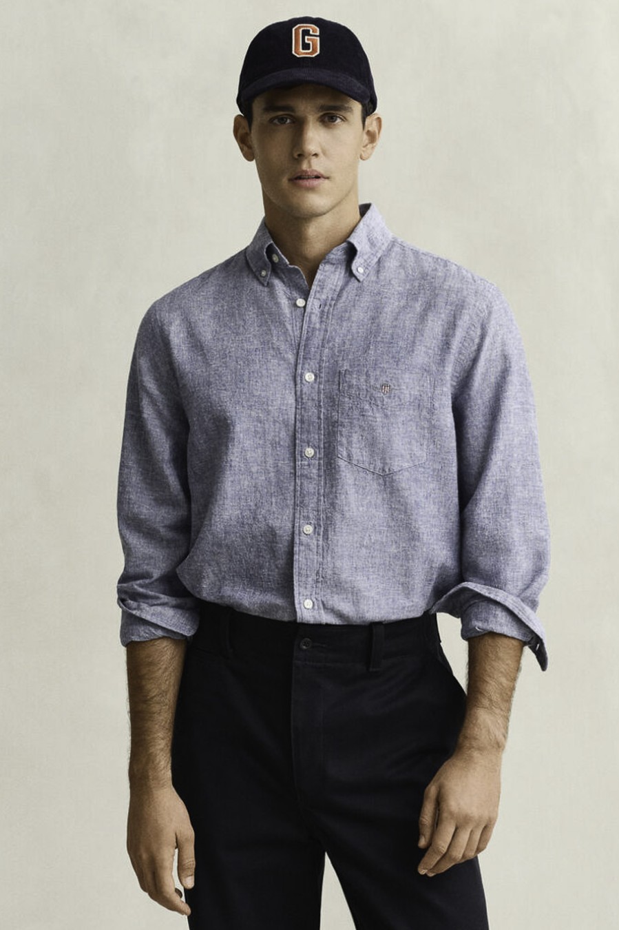 147433 Κανονική εφαρμογή Γιακάς με κουμπιά Πτυχή σε σχήμα κουτιού με θηλιά για ντουλαπάκι Σύνθεση: 55% ΛΙΝΟ 45% ΒΑΜΒΑΚΙ